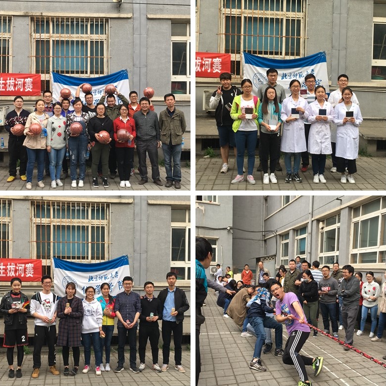 工会与学生会共同举办的体育文化节。作为体育月的重头戏,师生拔河比赛吸引了200多名师生参加和观看比赛。教师以工会小组为单位学生以班为单为参赛,教师6支队伍学生10支队伍参加了比赛。比赛分为四个组先进行预赛,各组第一进入决赛,老师学生平分秋色各有两队进入决赛。经过激烈的角逐,最后有机和化学生物学工会小组力压群雄,获得了冠军,2014级2班的同学获得了亚军,研究生队获得季军。