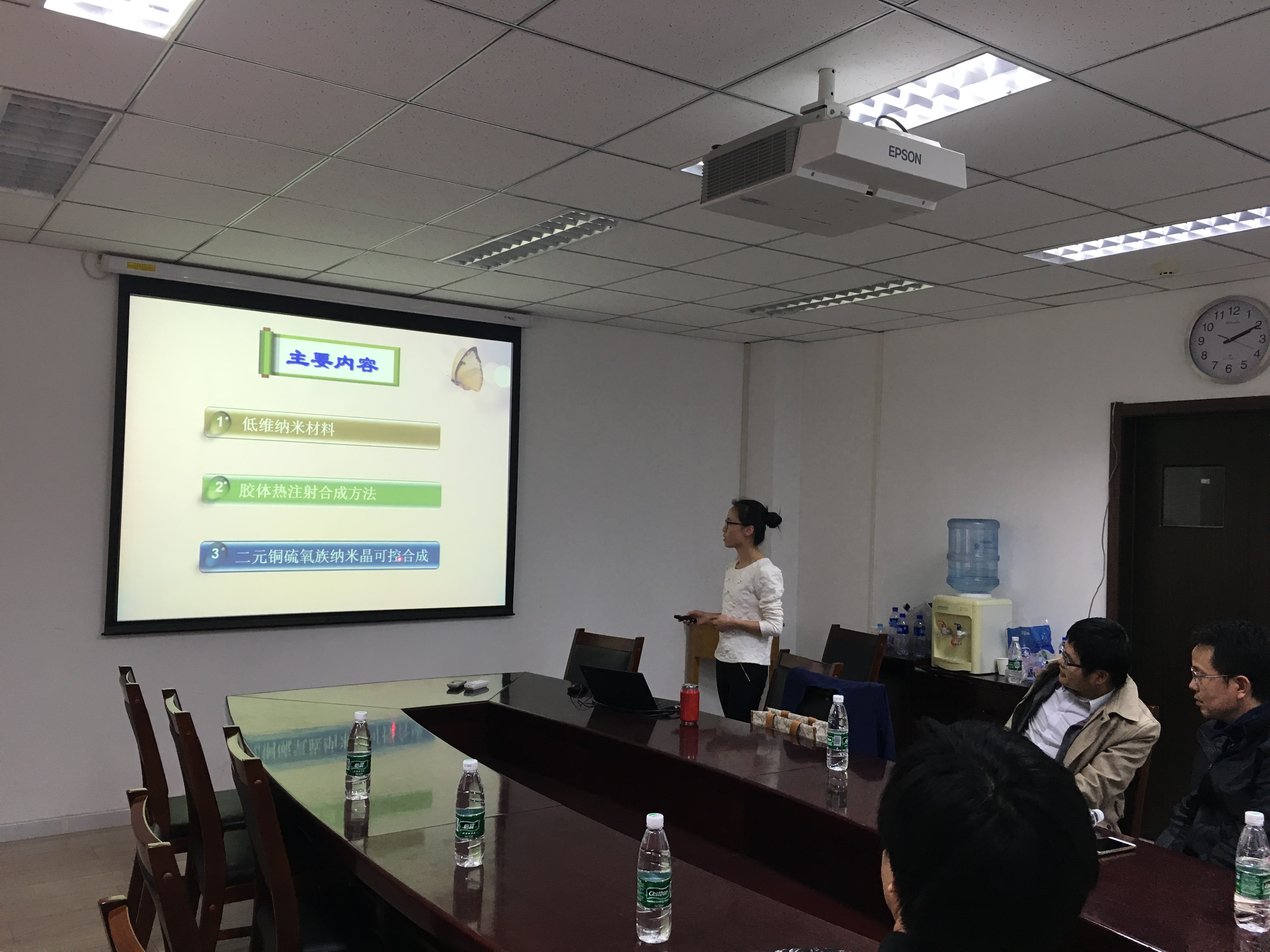 部分青年教师、研究生代表参加了本次活动。李文华老师主要从事无机纳米材料、有机无机杂化功能复合材料、新型钙钛矿材料制备和等离激元增强型聚合物太阳能电池研究和应用相关工作,目前在多功能无机纳米材料主要是铜的硫氧族半导体制备和研究,以及它们在生物、光电、热电应用方面取得了一系列的成果。李文华老师结合自身的科研经历,做了题为低维纳米材料制备及应用之胶体热注射合成法的主题报告,报告深入浅出、内容丰富而详实,引起了相关领域研究工作者和研究生的极大兴趣。随后,李文华老师与在座师生进行了热烈的讨论并就相关问题进行了深入的交流。