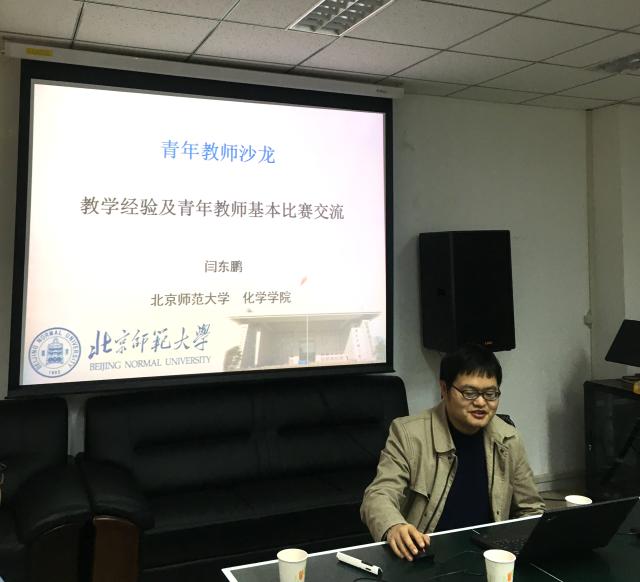 闫东鹏教授2014年3月入职51动漫 ,2018年获得国家自然科学基金优秀青年基金,2018年获得51动漫 青年教师教学基本功比赛本科理工组一等奖。闫东鹏老师结合自身在教学方面的经验以及参加青年教学基本功比赛的经历,做了题为“教学经验及青年教师基本功比赛交流”的主题报告,报告深入浅出,内容丰富详实。闫老师以一个青年教师的角度,给大家详细介绍了青年教师在教学工作中对已有经验的传承和前沿研究的发展,以及在准备青年教师基本功比赛中的经验技巧和注意事项,引起了在做青年教师的极大兴趣。随后,闫东鹏老师与在座的青年教师进行了热烈的讨论并就相关问题进行了深入的交流。