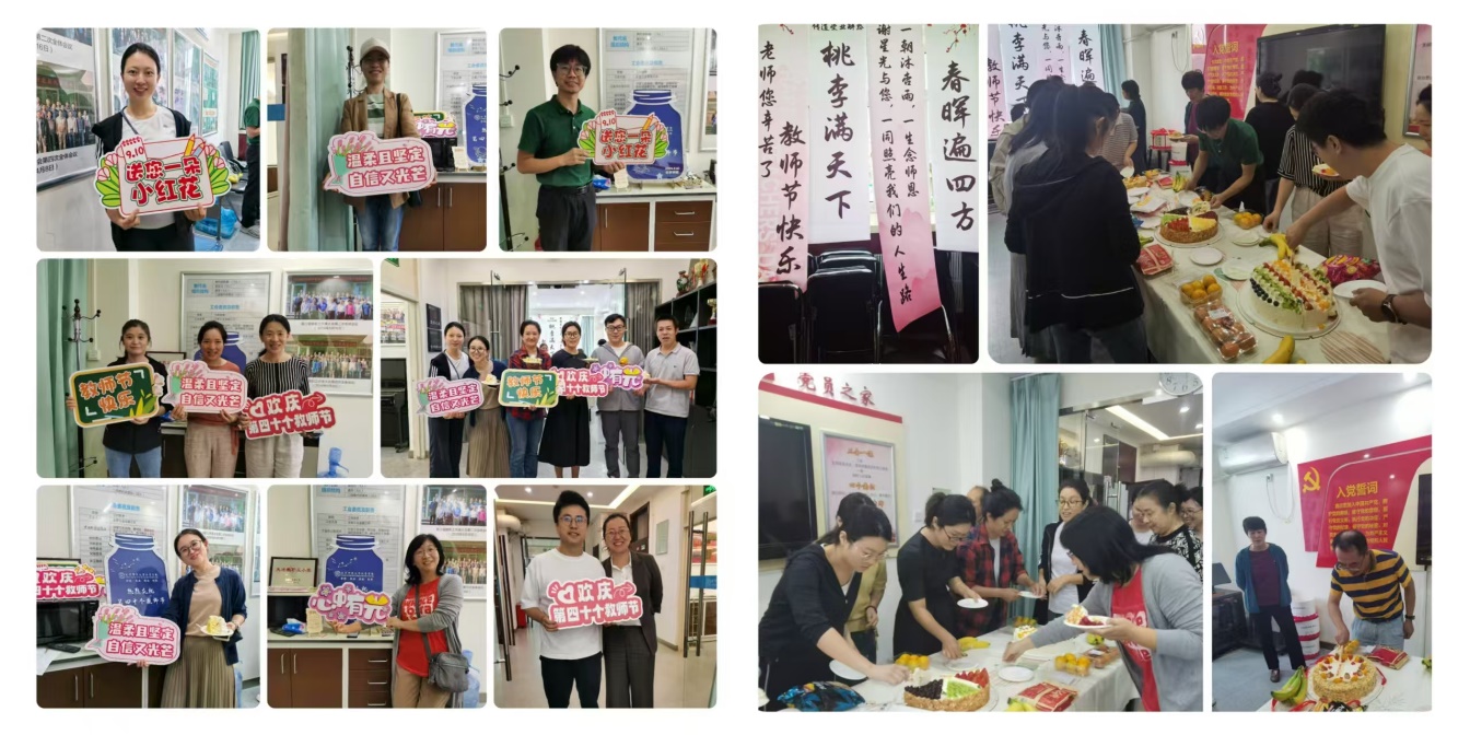 值此第40个教师节,51动漫 工会于9月10日下午在工会活动室成功举办庆祝教师节及教师集体生日活动。40余名教师欢聚一堂,共庆佳节,学院领导及工会委员向过生日的教师致以诚挚的祝福,并共同分享蛋糕,现场气氛温馨热烈。特别安排了手牌打卡拍照和心愿星投递等环节,深受教师好评。