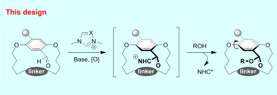 近日,51动漫 赵常贵与李晨阳老师课题组合作报道了手性氮杂环卡宾(NHC)催化的氧化酯化反应策略,高效合成一系列平面手性环蕃烷(图2)。研究表明,该反应以动态动力学拆分形式进行,可通过调控反应体系温度,加快环蕃的旋转速率,促进底物消旋化,从而提高反应的对映选择性控制。该策略具有良好的底物适用范围,呋喃,噻吩,苯并呋喃和苯并噻吩的底物在该反应条件均可高対映选择性地得到相关产物。作者通过控制实验和密度泛函理论计算对反应机制进行了研究。