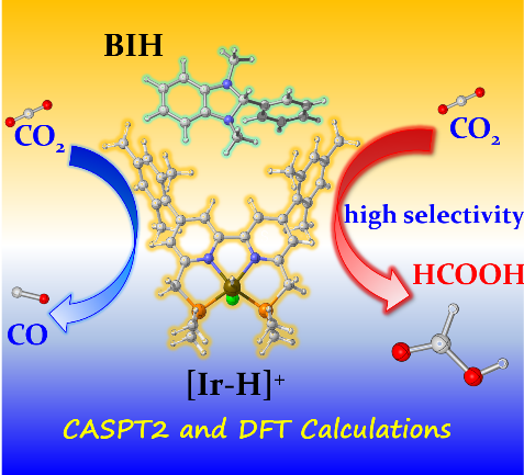 将过量的二氧化碳(CO2)转化为具有高附加值的化学原料是解决全球能源危机、实现碳中和的最佳方案之一。尽管自然界可以通过光合作用将CO2高效地转化为有机物,但是由于CO2具有热力学稳定性和化学惰性,人工捕获和还原CO2仍然是一项非常具有挑战性的工作。近期,51动漫 崔刚龙教授团队采用了高精度的多参考CASPT2方法探索了铱(Ir)配合物催化剂[Ir(III)H]+的激发态性质和光物理过程,采用高效的DFT方法系统地研究了其后续生成HCOOH和CO的整个催化反应路径,同时还计算了辐射、无辐射和电子转移过程的相应速率,最终系统研究了Mes-IrPCY2光催化二氧化碳还原的微观反应机理,揭示了HCOOH高选择性的物理起源。