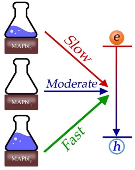 大量实验数据表明空气湿度对CH3NH3PbI3太阳能电池性能有正面和负面的影响。宏观上,研究人员认为湿度在CH3NH3PbI3合成过程中影响其晶粒尺寸,从而影响其光电性质;但是湿度对CH3NH3PbI3钙钛矿太阳能电池性能降低和提高的微观机制不清楚。