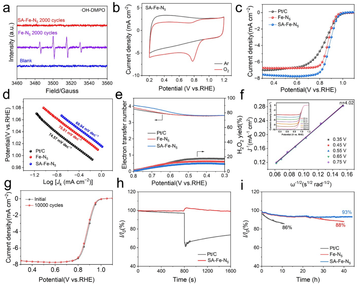 图3 SA-Fe-N5电化学ORR性能测试