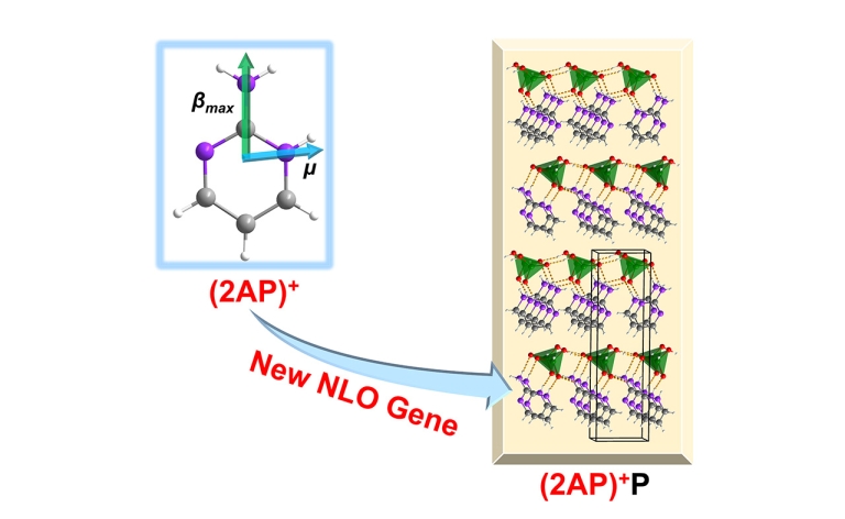 非线性光学(NLO)材料能将入射光的频率提高2倍,是现代激光科学技术中固体激光器件中的关键核心材料。目前,NLO材料基因主要是无机基团,例如商用基准物质β-BaB2O4 (β-BBO)中的(B3O6)3−,KH2PO4 (KDP) 和KTiOPO4 (KTP)中的(PO4)3−,或红外波段硫属NLO材料中的MQ4四面体基团。相比之下,有机NLO材料基因较少。因此,探索性能优异的有机材料基因及其综合性能优良的NLO材料具有重要意义。