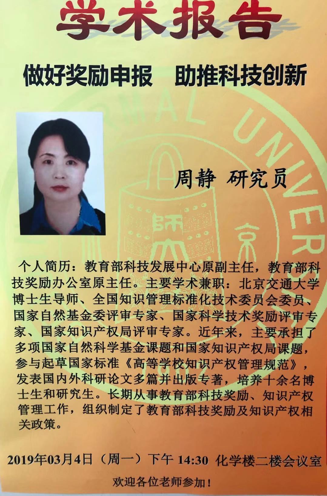 学术报告:教育部科技奖励办公室,周静 研究员,做好奖励申报 助推科研创新