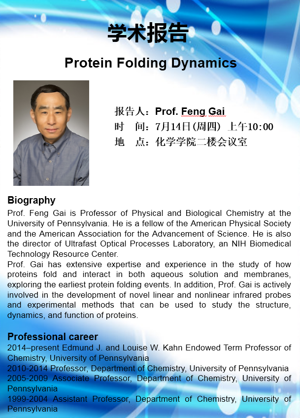 学术报告:美国宾夕法尼亚大学 盖峰 教授