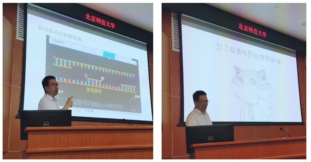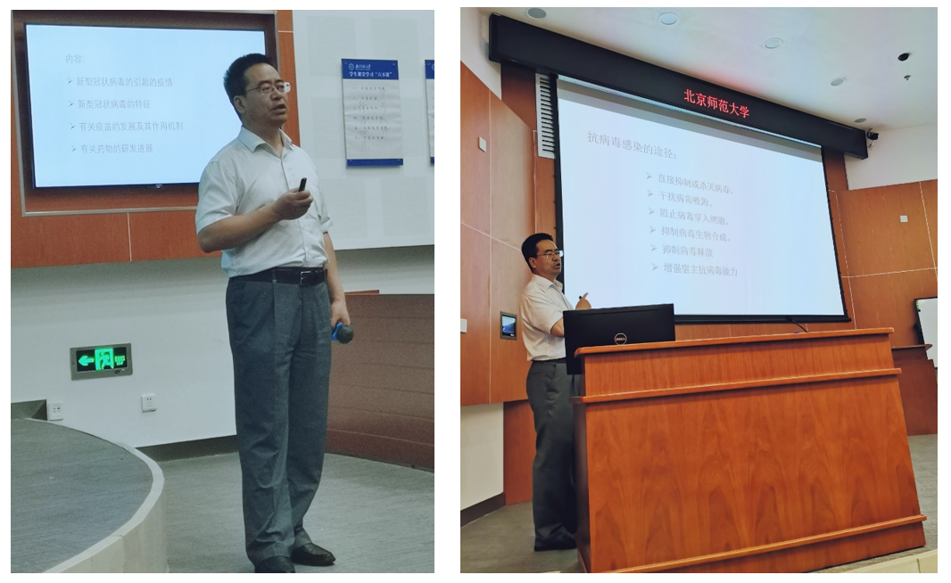 7月18日上午第一阶段,卢忠林教授为同学们作了“针对新冠病毒的疫苗和化学药物研发”前沿讲座,结合有趣的科普视频,从化学角度分析新冠病毒的结构、感染途径、核酸检测原理、疫苗研发情况、潜在治疗药物等,并以“人类一定会战胜新冠病毒,人类一定要学会与自然和谐相处、化学人对人类健康美丽大有作为”作为结束语。