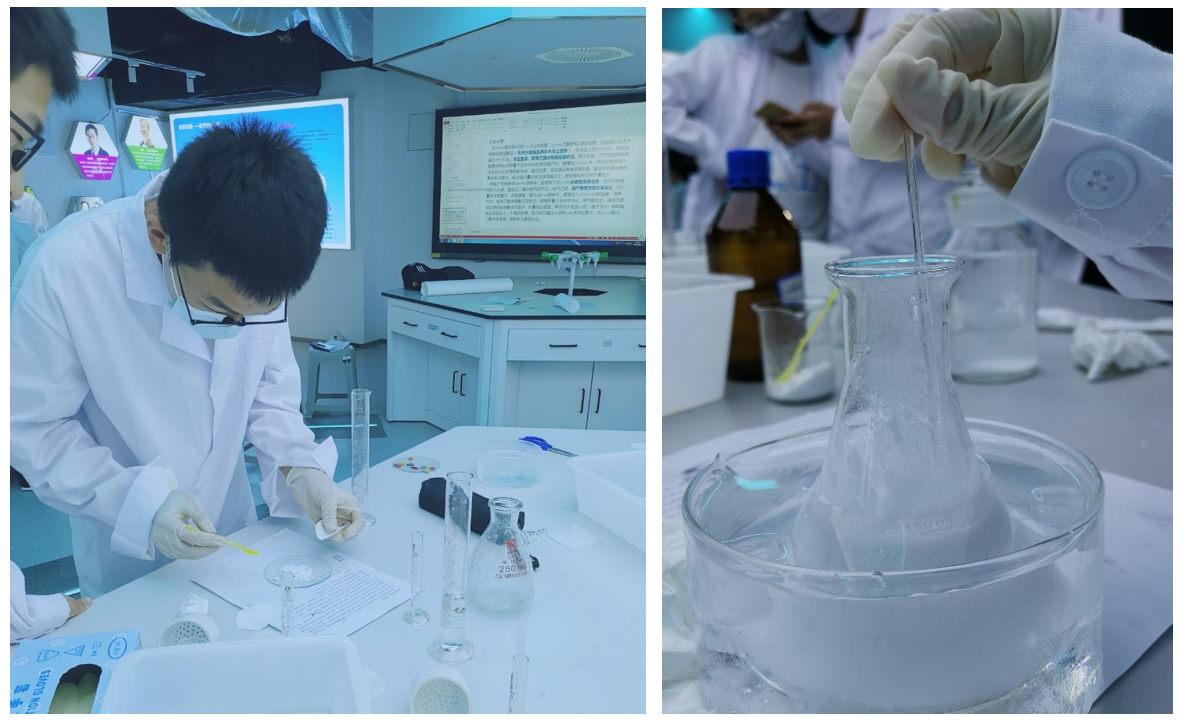 这一天的课程,使我充分体会到化学魅力之所在。不论是使用历史较长的锂离子电池,还是近来为防控新冠疫情中的种种疫苗,都是化学为生活、为人类做出的巨大贡献。这一天,有细致的阿司匹林合成,抽滤、结晶、重结晶…也有壮观的剧烈反应,过氧化氢分解、六价铬的氧化…这一切的一切无时不在开拓我的眼界,增长我的知识,使我对化学的兴趣进一步提高。总而言之,这一天的课程让人激动,使人充实,令人深思。——罗志豪