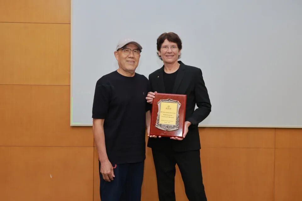 方维海代表学校向Bertozzi教授颁授 “京师大讲堂” 纪念牌,对她所带来的精彩报告和对于科学研究的深度启迪致以诚挚谢意。