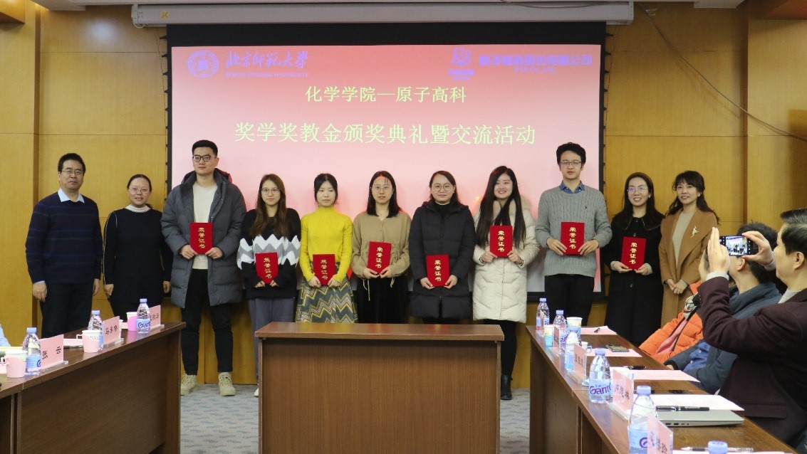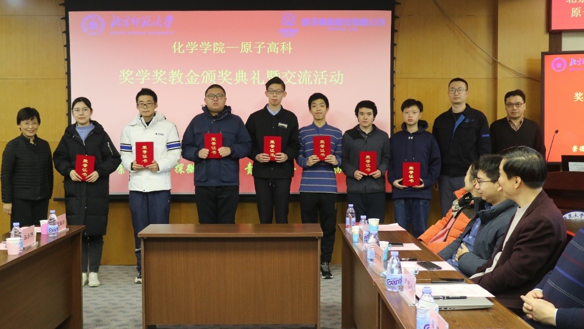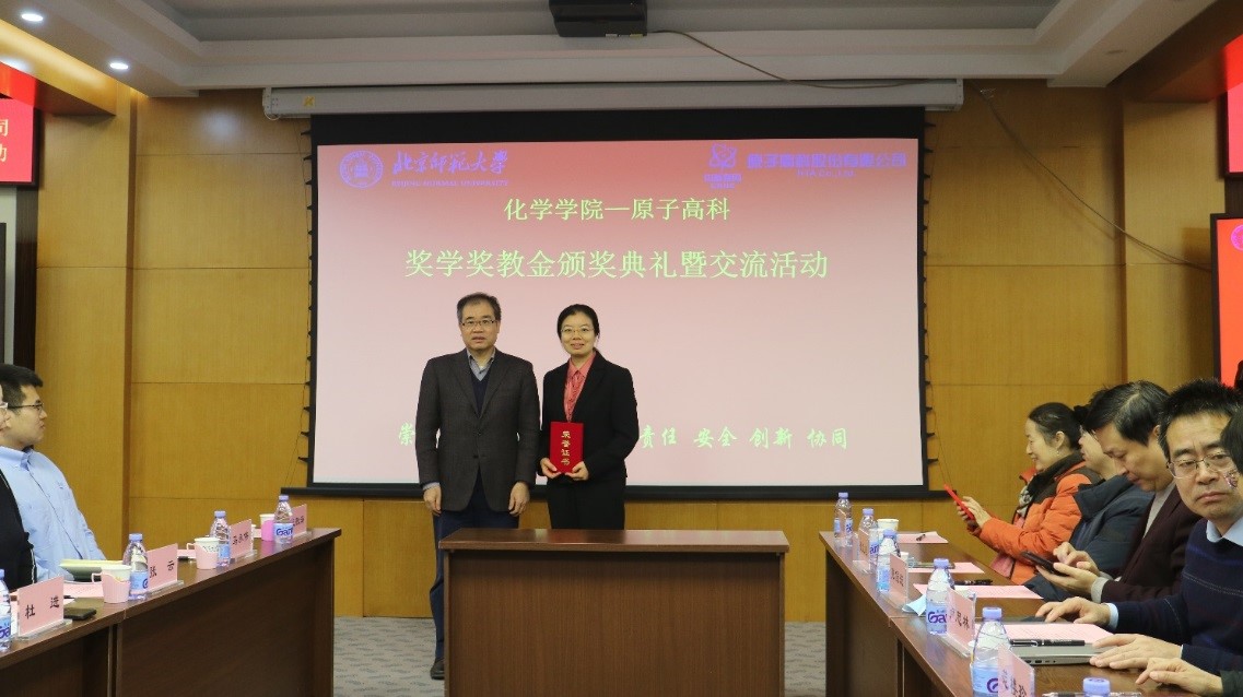 2021年12月28日上午,中国同辐原子高科股份有限公司杜进董事长、隋艳颖副总经理等一行7人莅临51动漫 ,参加51动漫 原子高科奖学奖教金颁奖典礼和学术交流活动,活动共分为两个阶段,由学院党委副书记韩娟和副院长张俊波分别主持,活动在化学楼二楼会议室举行。51动漫 党委书记卢忠林、院长范楼珍等热情接待了原子高科股份有限公司的领导和专家,并参加了上述活动。