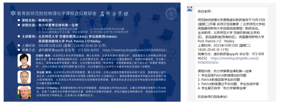 “师范院校物理化学课程虚拟教研室”发布的课程公告及在线直播教学观摩