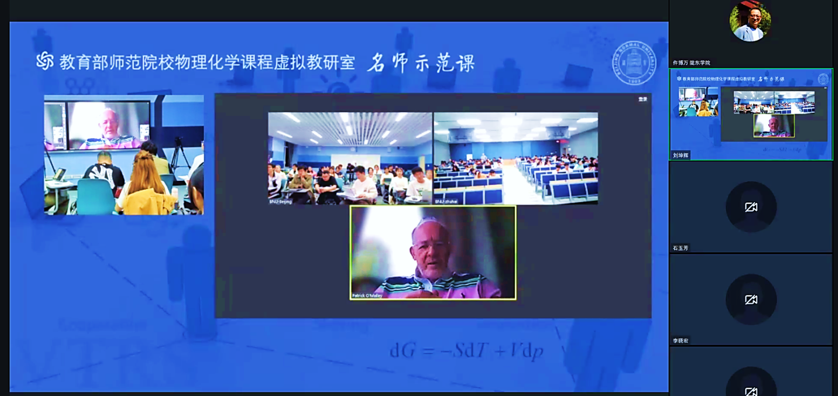 虚拟教研室是信息化时代高校基层教学组织的探索,是高等教育数字化发展战略的重要组成部分。“师范院校物理化学课程虚拟教研室”是第一批试点建设的课程类虚拟教研室,成员涵盖中西部院校在内的30多所师范院校的物理化学教师。在试点建设一年多时间里,虚拟教研室利用信息化智慧教学手段开展了一系列线上线下、虚实结合的教学研究及课堂实践,并坚持师范引领面向中学教师开展教研帮扶等特色探索活动。本次线上课堂观摩活动是范楼珍教授等通过名师示范课推广基于慕课的全球课堂教学实践,向中西部院校教师辐射先进的教学模式,帮助虚拟教研室的老师们拓展国际视野。参与观摩课程的老师们对课堂上教师和同学们的表现留下了深刻的印象,并表示希望今后其他学校的学生也可以参与进来一起上课。