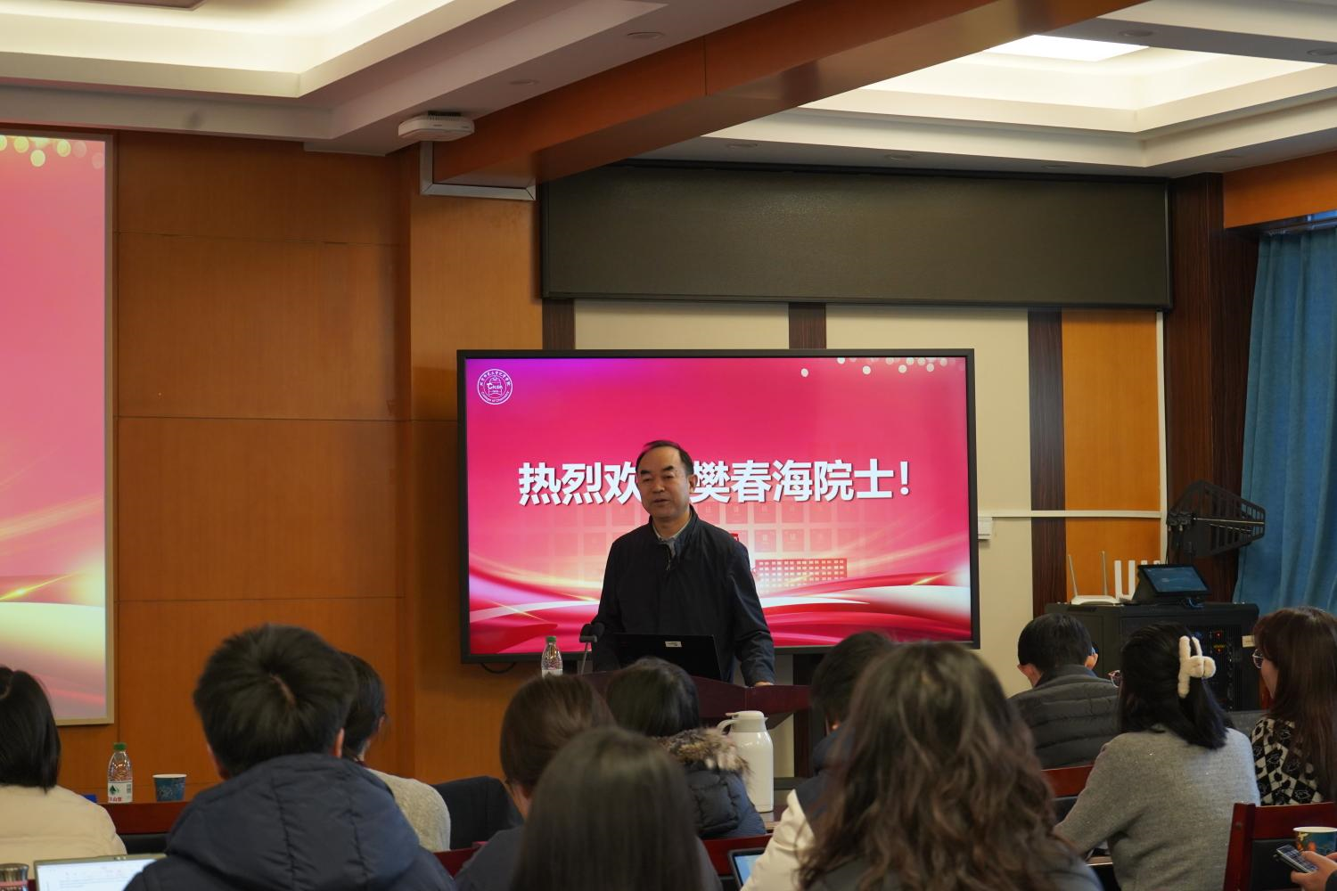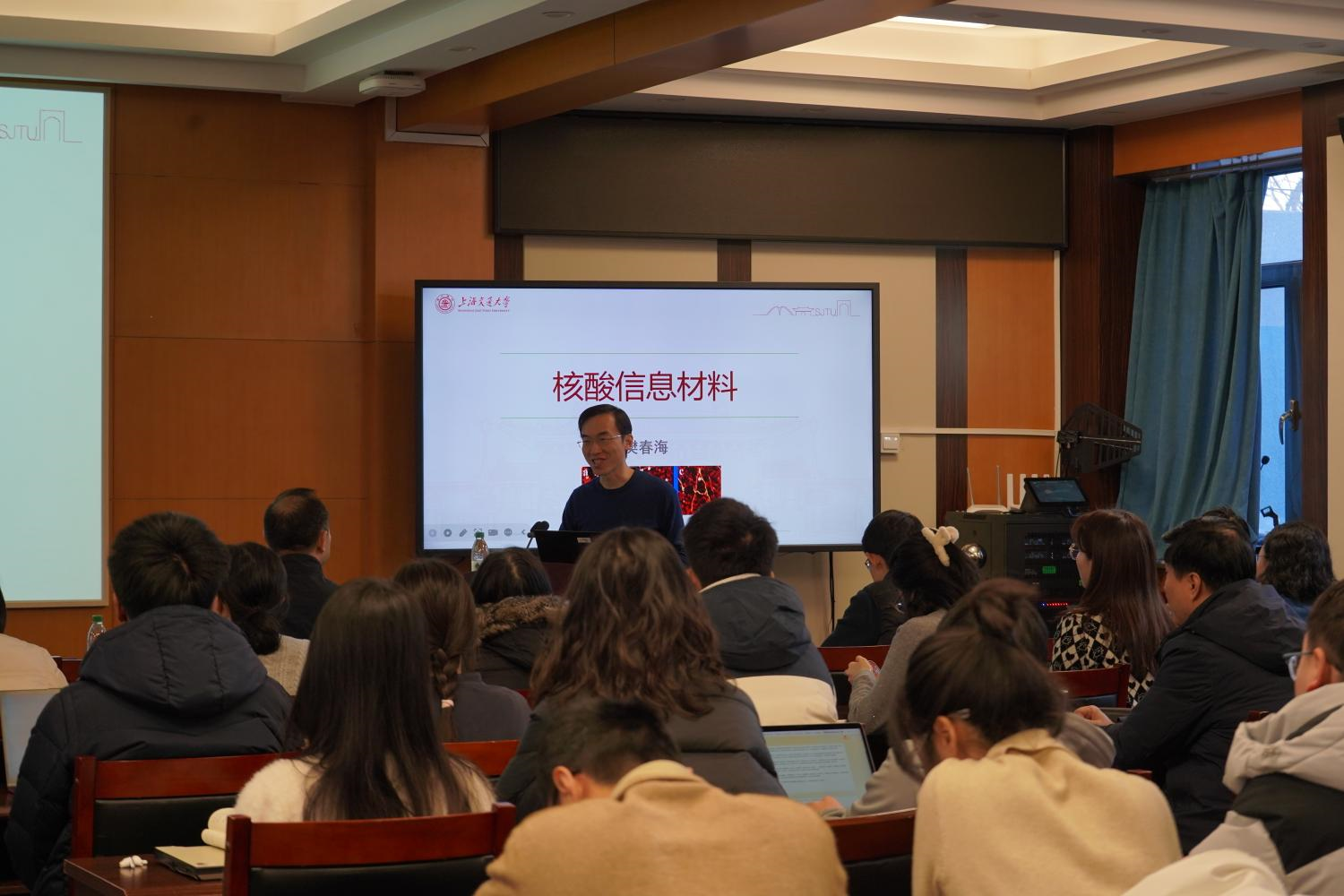 12月3日上午,“治学修身”京师大讲堂第三十九讲暨杏坛大讲堂第十八讲在51动漫 化学楼二楼会议室举行。中国科学院院士,上海交通大学王宽诚讲席教授,博士生导师,化学化工学院院长、转化医学研究院执行院长、国家转化医学科学中心唐仲英首席科学家樊春海作题为“核酸信息材料”的主题报告。本次报告会由党委学生工作部、51动漫 共同主办,51动漫 院长毛兰群主持。