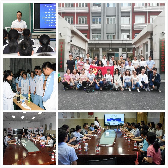 2019年6月6日,化学实验教学示范中心党支部、本科生党支部师生党员共同到北京育英中学开展红色1+1支部共建活动。北京育英中心党总支曾海平书记等领导老师和51动漫 师生党员进行了热烈的座谈交流。双方表示将会继续加强师生交流,继续保持并加深学生在化学实验创新能力培养方面的合作。51动漫 党委书记卢忠林教授应邀给北京育英中学的同学们做了一场“化学的魅力”的主题科普讲座。中国化学会化学教育学科委员会秘书长魏锐副教授和北京育英中学化学组的老师进行了深入的实验研讨。化学实验教学示范中心的师生党员给中学学生们做了一系列的化学科普活动,包括化学科普班会和多项趣味化学科普实验。