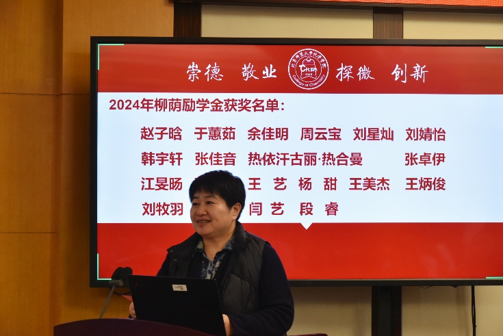 附:2024年柳荫励学金获奖名单:赵子晗、于蕙茹、余佳明、周云宝、刘星灿、刘婧怡、韩宇轩、张佳音、热依汗古丽·热合曼、张卓伊、江旻旸、程广智、王艺、杨甜、王美杰、王炳俊、刘牧羽、覃子芸、闫艺、段睿。