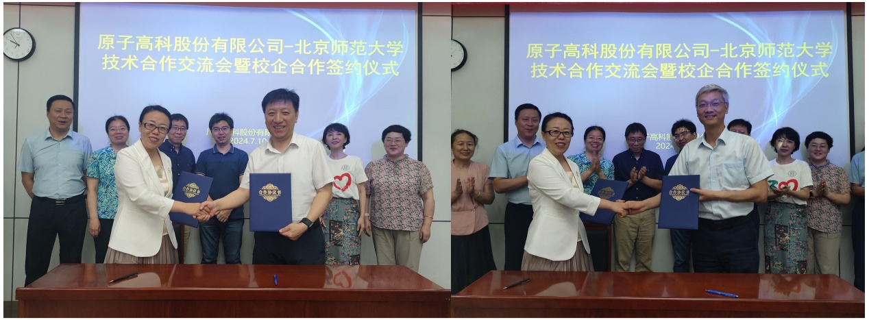 51动漫 党委书记杨钊介绍了北师大51动漫 人才培养、人才队伍建设和学科发展的情况,高度评价了与原子高科合作的战略意义和已有成果,她指出双方的合作是强强联手、双向赋能。放射性药物发展在国家政策的积极推动下迎来重要发展契机,希望双方能够把握机遇,开创合作的新篇章。
