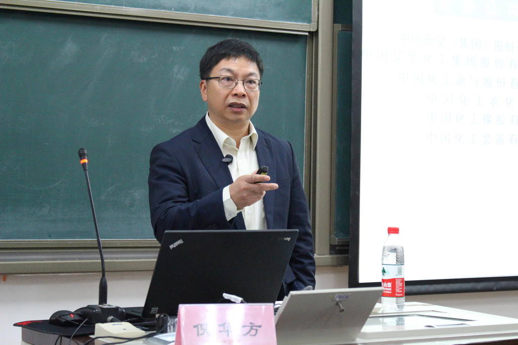 党委书记卢忠林老师主持此次讲座,共有160多名本科生、研究生、年青教师和企业人员参与。首先,倪总给同学们介绍了蓝星(集团)公司和中国化工集团传奇的发展过程。1984年,蓝星的创始人任建新带领7个人,借款1万元创立了中国第一个专业清洗公司——蓝星公司。依靠不断的奋斗和创新,蓝星公司已经成为中国化工新材料的领航者,主营业务在全球居领先地位,其中有机硅和蛋氨酸业务均居全球前三位。2004年蓝星成为中国化工集团公司下属专业公司,任建新成为中国化工集团公司总裁。目前中国化工是中国最大的化工企业,在世界500强列211位; 同时它是“零排放”管理的领先者,通过发达的管理和技术,最大程度减少污染和碳排放,创新技术开始向国际知名企业输出,正在努力成为具有国际竞争力的世界一流化工企业。同学们都为中国蓝星(集团)公司和中国化工集团的迅速发展和创新能力而感到骄傲自豪。