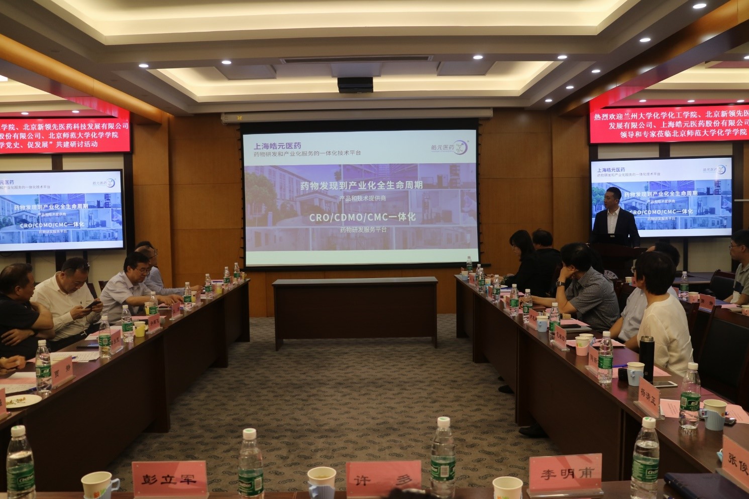 会议第二阶段是高校和企业产学研工作研讨,参会各方结合单位业务工作、产学研合作潜力点等谈心得、聊收获。兰州大学校长助理和科学技术发展研究院执行院长许鹏飞教授讲话,对皓元企业成功上市表示祝贺,对北师大为兰州大学校友提供的平台和两个校友企业的支持表示感谢;介绍了兰州大学科研管理的理念和产学研状况,期待四方作为高水平研究型大学或创新型企业开展好科学研究相关工作。兰州大学化学化工学院院长梁永民教授介绍了兰州大学化学化工学院的办学历史、下设机构、师资力量、科研和教学成果等。兰州大学功能有机分子化学国家重点实验室主任王为教授介绍了国家重点实验室的建设情况。北京新领先医药科技发展有限公司董事长陶新华和总裁助理颜耀东介绍了新领先医药科技发展有限公司的业务范围、产学研合作方向等。新领先医药副总裁董颖博士介绍了新领先分析测试中心的简介及相关工作,如遗传毒性杂质控制策略、基因毒检测方法、聚合物和无法获得对照品杂质研究策略、原料药杂质控制策略等。上海皓元医药股份有限公司医药首席运营官彭立军博士介绍了公司的业务、发展历程、经营状况、知识产权布局和荣誉资质、未来展望等。51动漫 副院长张俊波介绍介绍了学院放射性药物教育部重点实验室的平台建设和近期多个创新型放射性诊断药的研究详情。51动漫 党委书记卢忠林教授做总结发言。