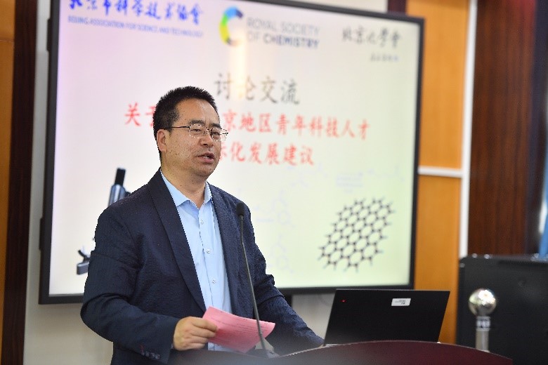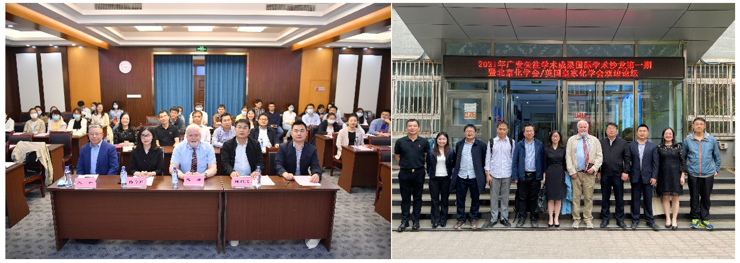 5月13日,在“全国科技工作者日”即将到来之际,北京地区广受关注学术成果国际学术沙龙第一期暨北京化学会/英国皇家化学会双边论坛在51动漫 举办。北京市科协国际联络部副部长芦晓鹏、学会部副部长李斌到场参加,英国皇家化学会(RSC)中国与东亚区总经理陈会丽、英国皇家化学会中国北京办事处主任戴伟教授、英国皇家化学会会士及Materials Chemistry Frontiers期刊副主编王丹教授出席会议,51动漫 党委书记卢忠林教授、院长范楼珍教授、副院长杨清正教授,北京化学会秘书长孙根班教授等相关人员参加活动,北京化学会副秘书长李会峰主持。