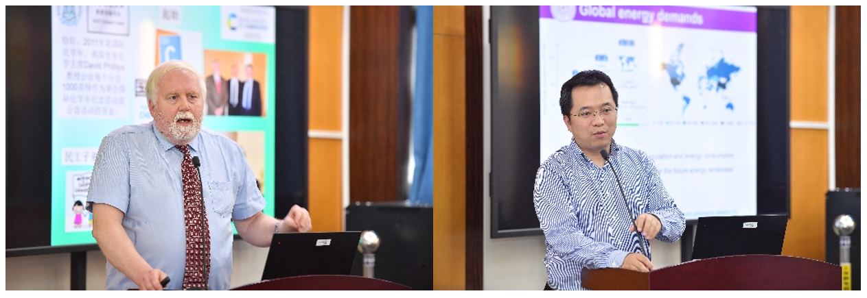 随后,论坛进入学术报告及交流环节。活动邀请三位2019北京地区广受关注学术论文获得者分享了各自的最新研究成果。英国皇家化学会期刊讲座奖获得者、清华大学张强教授,第六届中国化学会-英国皇家化学会青年化学奖、中科院化学所侯剑辉研究员,英国皇家化学会会士、51动漫 闫东鹏教授分别以《二次电池电解液的能源化学新进展》、《有机光伏材料分子设计》、《分子基长余辉发光材料的组装及性能》为题介绍其团队最新研究成果,三个报告内容巧妙的连接了能源方面的转换-存储-发光,不约而同地贯穿了“碳达峰、碳中和”的新发展理念。