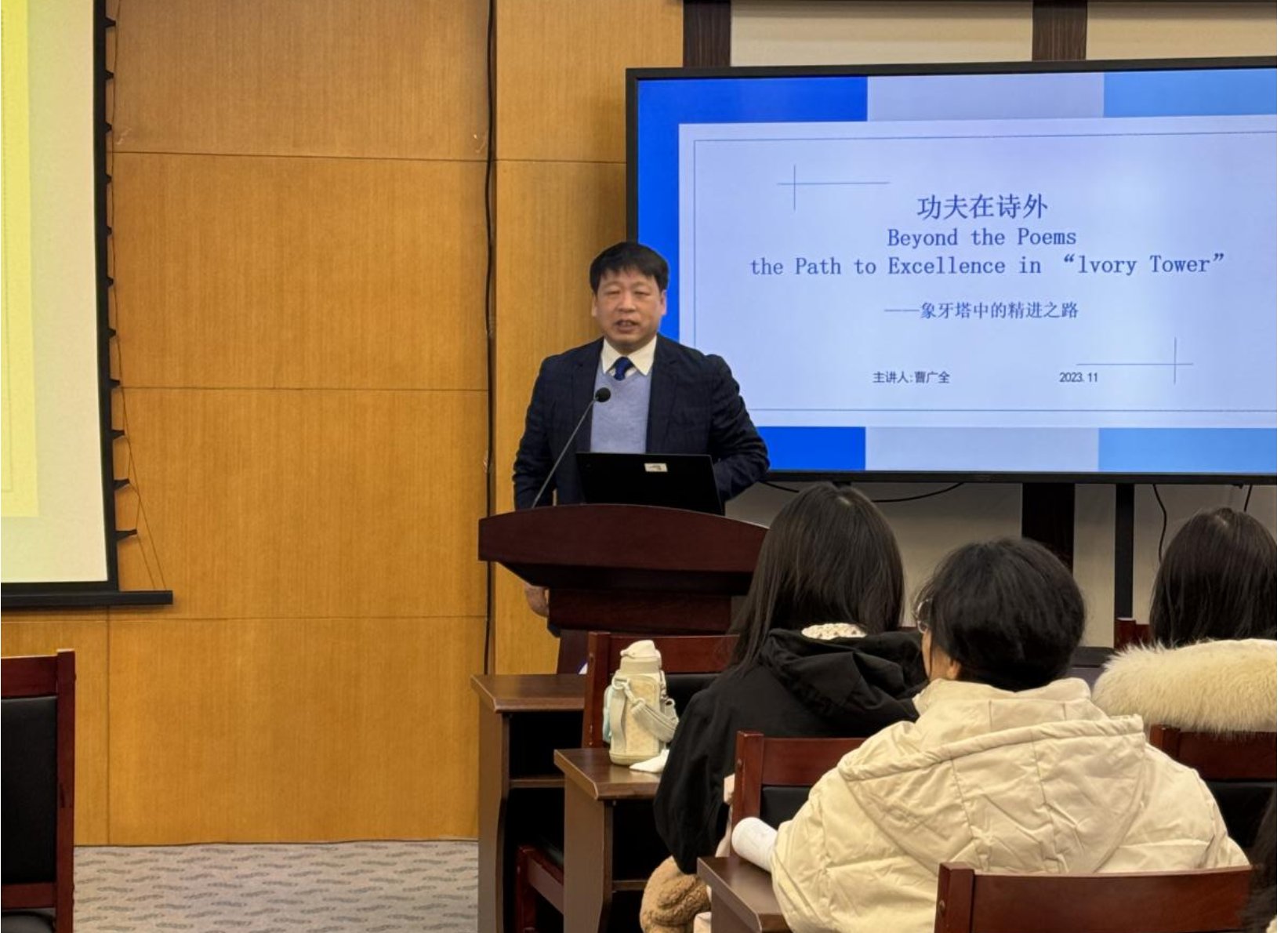 11月25日,曹广全局长为51动漫 给同学们做了题为《功夫在诗外一一象牙塔中的精进之路》的职业生涯规划讲座,讲座有51动漫 党委书记杨钊老师主持,近百名同学参加了本次活动。