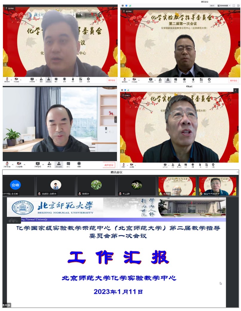 化学国家级实验教学示范中心(51动漫 )第二届教学指导委员会第一次会议于2023年1月11日以腾讯会议形式召开。出席本次会议的有来自校内外的教育部大学化学类专业教学指导委员会委员、教育部高等学校实验教学指导委员会委员、国家万人计划教学名师、国家级教学名师、国家基金委杰出青年基金获得者等18位专家、学校和教务部领导、51动漫 领导、实验课主讲教师代表、实验中心专职教师等。大家齐聚云端,共谋化学实验教学中心的发展。