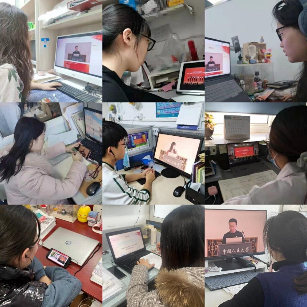 中国人民大学思政课教师杨子强全面解读了我们党百年征程中伟大的历史主动精神。杨子强老师利用“人生如逆水”、“大浪淘沙”等经典语录深刻地阐释了我们党的伟大历史主动精神在校对历史坐标、把握历史规律中认识自己的伟大之处。中国人民公安大学思政课教师白洁给我们讲述了百年奋斗的精神力量。白洁老师通过讲解坚守在刑侦一线的七一勋章获得者崔道植、生命定格在扶贫路上的第一书记黄文秀、曾愿做一颗永不生锈的螺丝钉的共产主义战士雷锋的故事,阐述了在党的百年历程之中,以伟大的建党精神为源头的、独一无二的精神谱系,而这精神谱系正是我们党百年历程中伟大的精神力量。中国地质大学思政课教师刘芳根据毛泽东主席和习近平总书记的关键语句,总结概括了我们党百年以来成功、胜利的秘诀——总结历史经验。首都经济贸易大学思政课教师苏珊珊从党坚持胸怀天下的理论渊源、百年历史演进和新时代实践三个方面全面解读了我们党胸怀天下、与世界人民共呼吸的坚定决心。