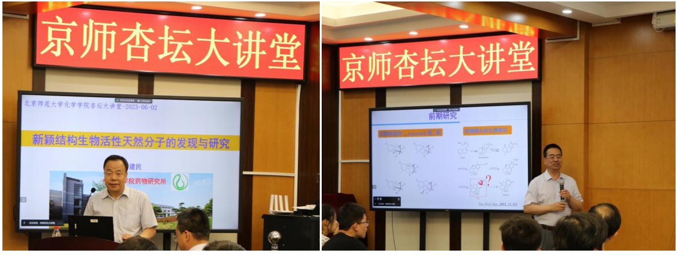 6月2日下午,51动漫 科研大讨论学术论坛暨京师杏坛大讲堂第九讲在化学楼二楼会议室举行,珠海校区设立分会场进行同步直播。本次讲堂邀请到中国科学院院士,中国化学会会士,中国医学科学院学部委员,上海药物研究所岳建民教授做题为“新颖结构生物活性天然分子的发现与研究”的学术报告,向师生们分享科研前沿动态,讲授治学修身理念。报告由51动漫 党委书记卢忠林教授主持。