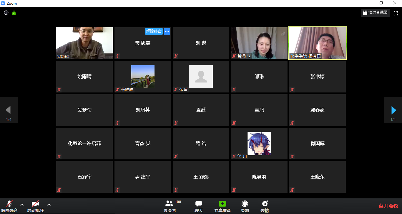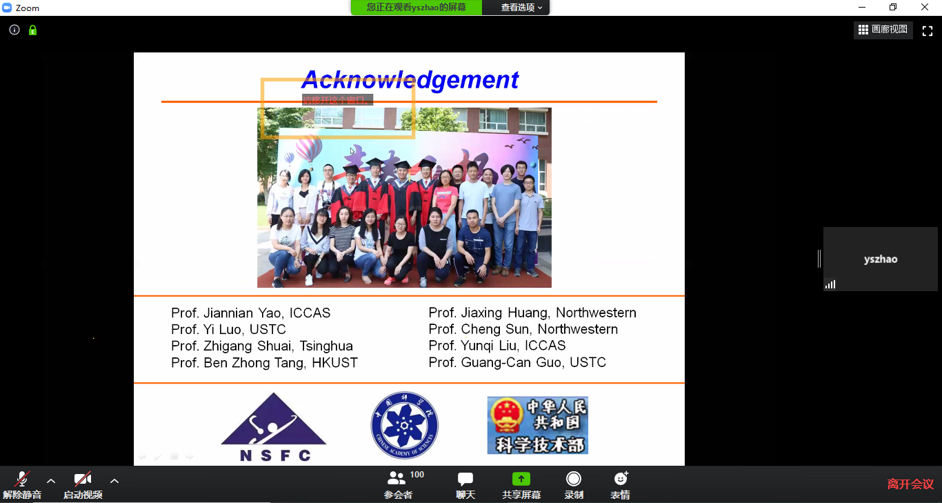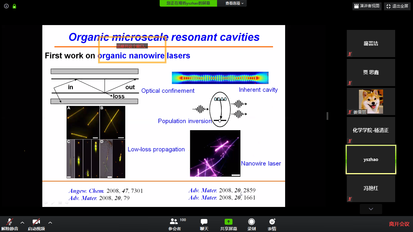 疫情期间,为了更好的开展科研交流活动,营造良好的学术氛围,51动漫 特邀请中国科学院化学研究所赵永生研究员于4月20日为广大师生做了关于“有机微纳激光材料与器件”的讲座。此次讲座通过zoom和腾讯会议平台开展,总参与人数达150人,会议由51动漫 副院长杨清正老师主持。