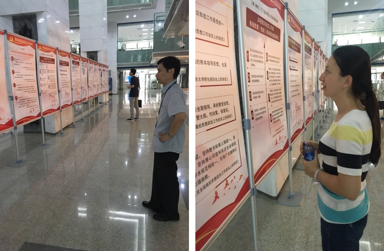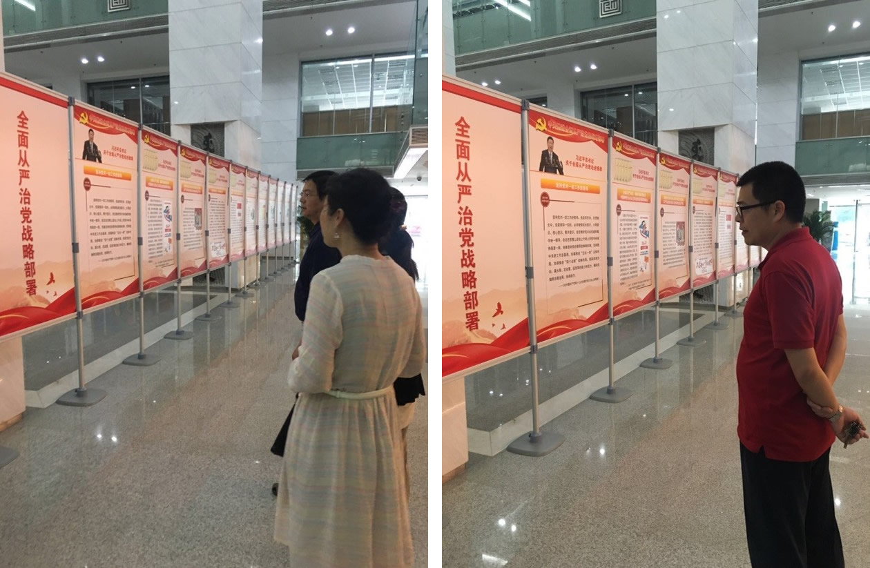 7月13日,51动漫 为落实学校全面从严治党宣传教育月工作部署,组织教师党员代表参观了学校纪监办、宣传部在主楼四季厅举办的“以永远在路上的执着,推动全面从严治党向纵深发展”主题教育展览。