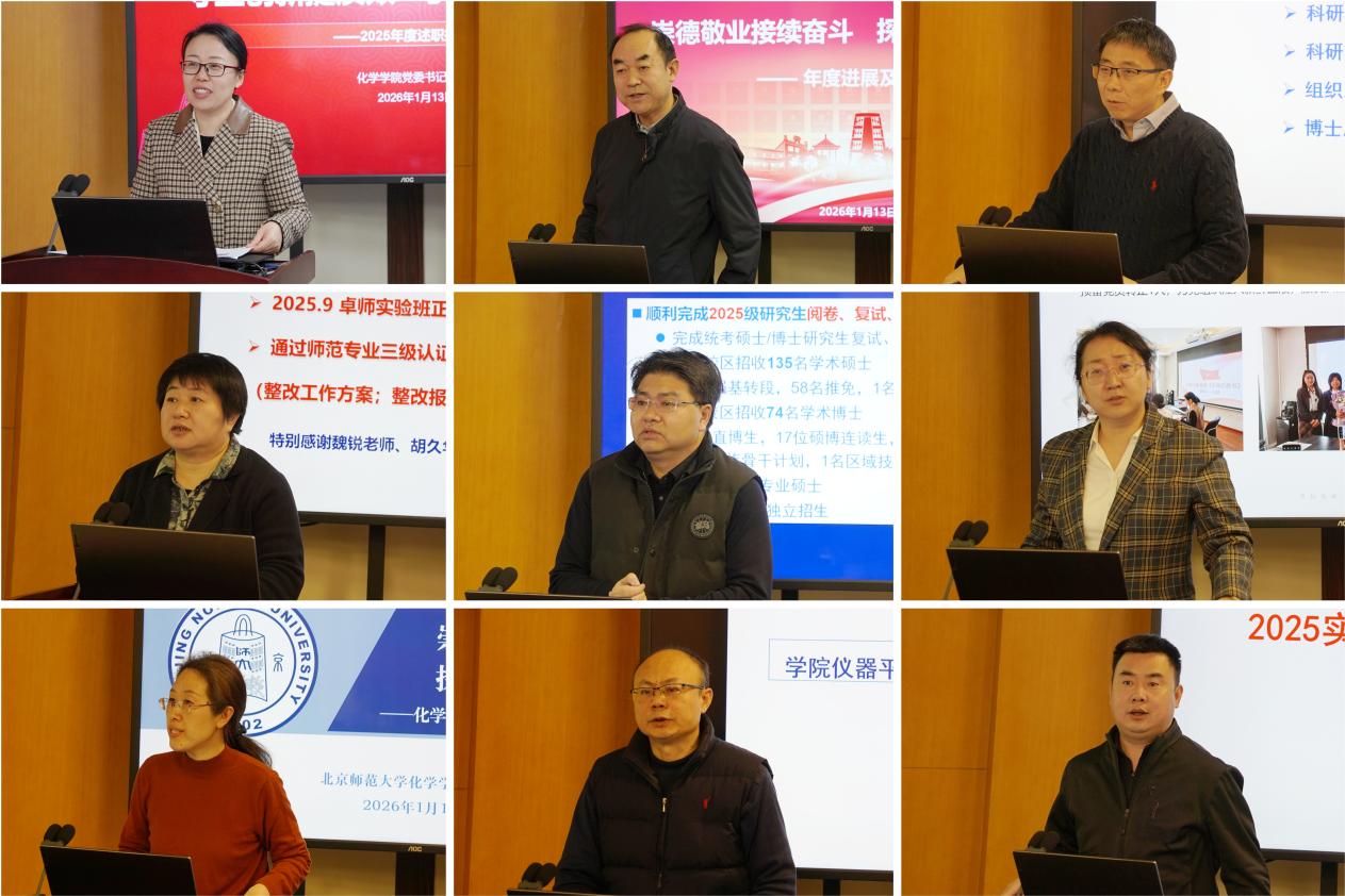 随后,会议进入党政领导班子述职与民主测评环节。学院党政领导班子成员依次围绕2025年度履职情况进行述职述廉,全面汇报了过去一年学院在党建思政、人才培养、科学研究、人才队伍建设、社会服务、学院仪器平台建设等方面的工作进展与取得的主要成绩,并接受了与会教职工的民主测评。