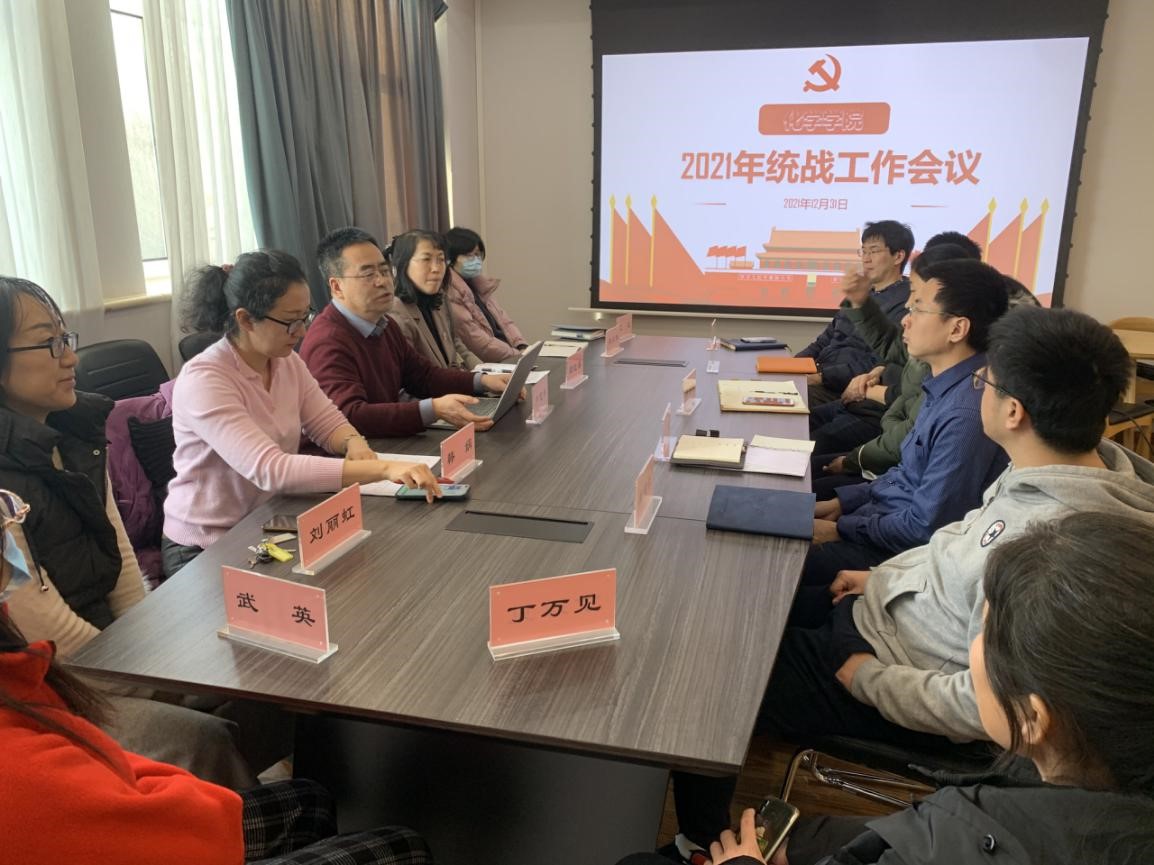 为深入学习贯彻十九届六中全会精神,更好落实《中国共产党统一战线工作条例》,广泛凝聚共识,51动漫 与12月31日召开了2021年统战工作会议。校党委统战部副部长邵红英,51动漫 党委书记卢忠林,副书记韩娟和学院民主党派人士及其他党外人士代表参加了座谈会。