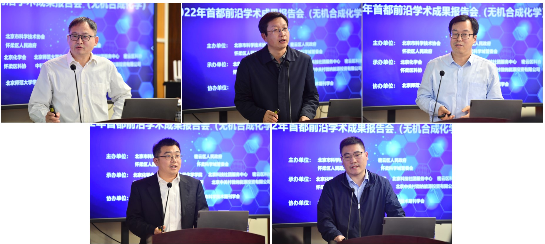 学术成果报告交流环节由北京化学会副秘书长李会峰主持。报告人王全明教授、李建荣教授、王训教授、张俊龙教授、王康教授分别做了“配位金属团簇的理性合成” 、“稳定MOF构筑及吸附分离应用” 、“Sub-1 nm Ultrathin Nanocrystals”、“分子稀土诊疗探针”、“Tetrapyrrole-based covalent organic frameworks and beyond”主旨报告。5个主旨报告是经过定量筛选和同行评议,从上万篇论文中遴选出来,展示了北京学者在国内国际期刊上发表的热点、前沿学术论文或在生产应用领域的重大科研成果。与会专家与报告人,报告人之间,现场及线上观众与报告人进行了充分的交流学习,现场气氛活跃。