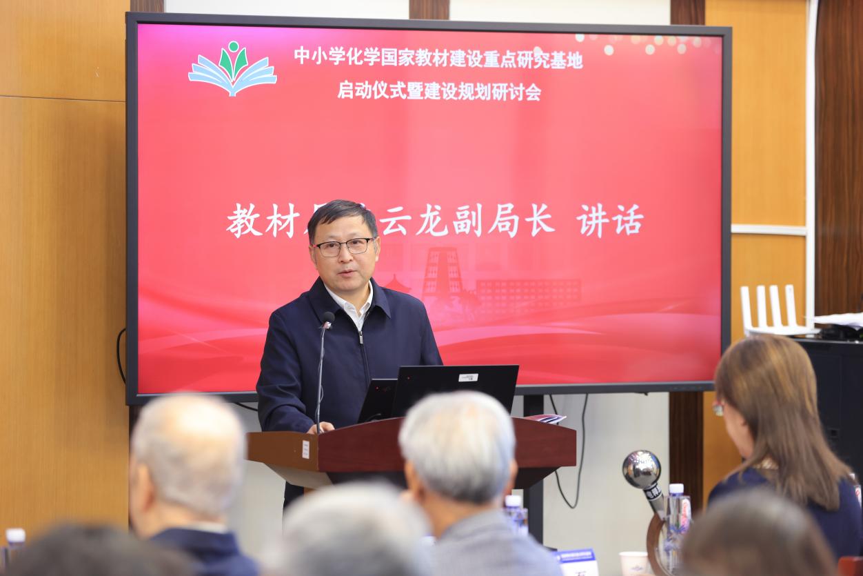 陈云龙在讲话中指出,教材作为基本教学载体,是推进建设教育强国、科技强国、人才强国的关键支撑。建设国家教材建设重点研究基地是落实习近平总书记关于教育重要论述、落实党的二十大精神、培养时代新人、服务教育高质量发展的要求,是落实教材建设国家事权的重要举措。基地建设主体单位应高度重视,充分保障基地建设的发展,做好统筹规划,切实落实自身责任,加强自身建设,将基地打造成为研究、成果、人才和数据的高地,为服务国家教育发展和教材建设的重大战略、推动提高教材建设的科学化水平提供理论支持和智力支撑。