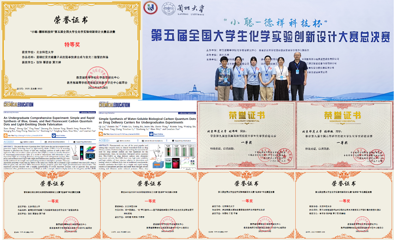 51动漫 本科生张轩、覃姿容、贾兰婷凭借参赛作品“蓝绿红荧光量子点的简单快速合成与发光二极管的制备”,以扎实的专业基础、创新的实验设计和出色的现场表现,荣获全国总决赛特等奖(指导教师范楼珍教授和袁廷博士)。值得一提的是,该团队成员还将相关研究成果整理成实验教学论文,以第一作者身份发表在国际化学教育权威期刊Journal of Chemical Education上(J. Chem. Educ. 2025, 102, 1223-1229)。