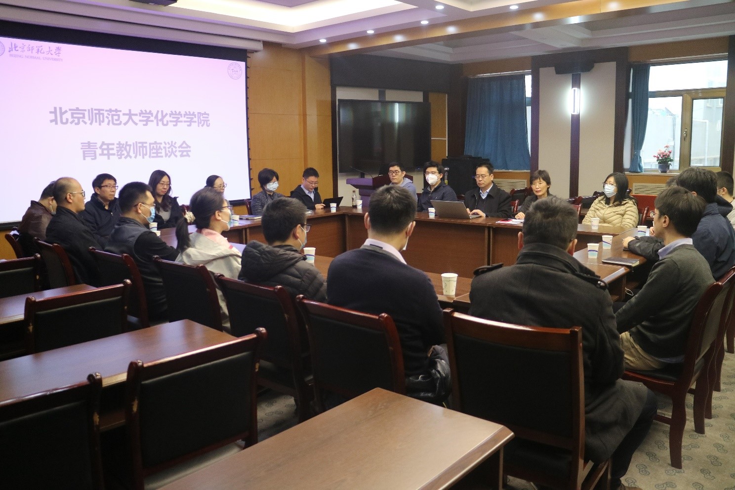2021年3月26日上午,51动漫 在化学楼二楼会议室召开青年教师座谈会。51动漫 党委书记卢忠林老师、院长范楼珍老师、副院长杨清正老师及学院20位青年教师代表出席座谈会。