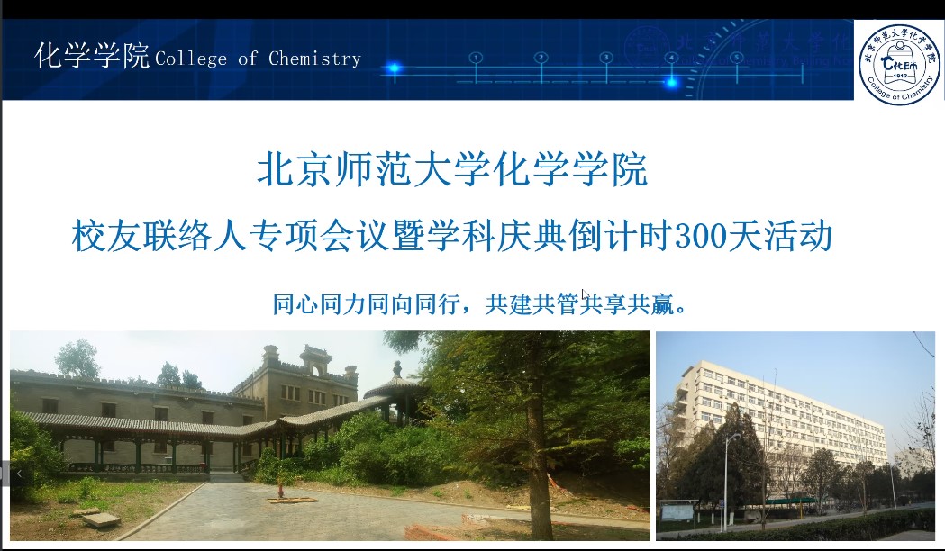 学院院长范楼珍代表学院以“百年化学院,桃李竞芬芳”为题,从学院历史沿革、师资力量、教学成就、科研平台和成果、产学研工作等多方面介绍了学院发展情况,表示学院灿烂的成就是由校友们谱写的,未来的发展依然需要包括所有校友在内的北师大化学人同心同德努力奋斗,期待未来能在线下与校友们畅叙情谊,共商发展。
