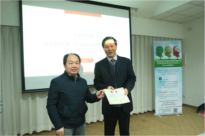 委员聘任结束后大会进行了学术交流,51动漫 崔孟超副教授做了《AD脑内淀粉样斑块和神经纤维缠结显像剂的设计与评价》学术报告,浙江省立同德医院张滢教授做了《阿尔茨海默病的精神行为症状和科研需求》学术报告。