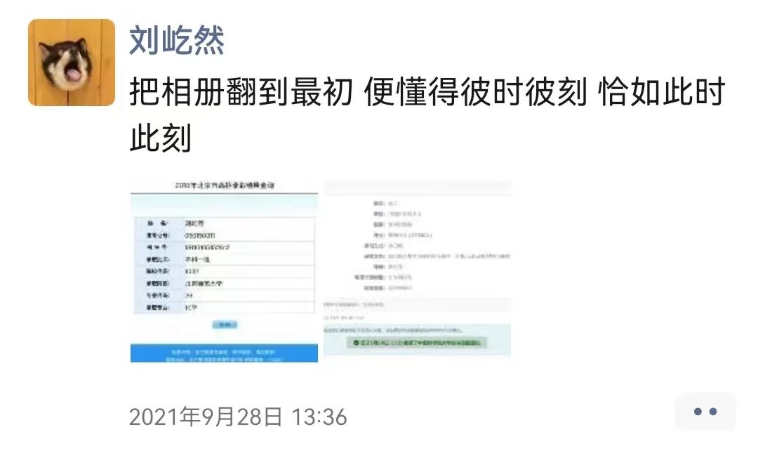 系统里的待录取通知发来的那一刻,刘屹然发了一条朋友圈:“把相册翻到最初,便懂得彼时彼刻,恰如此时此刻。”配的两张图片,一张是刘屹然2018年高考录取结果的截图,一张是新鲜的待录取通知截图。相信在未来,他也能扎实地过好人生,把故事慢慢讲给我们听。