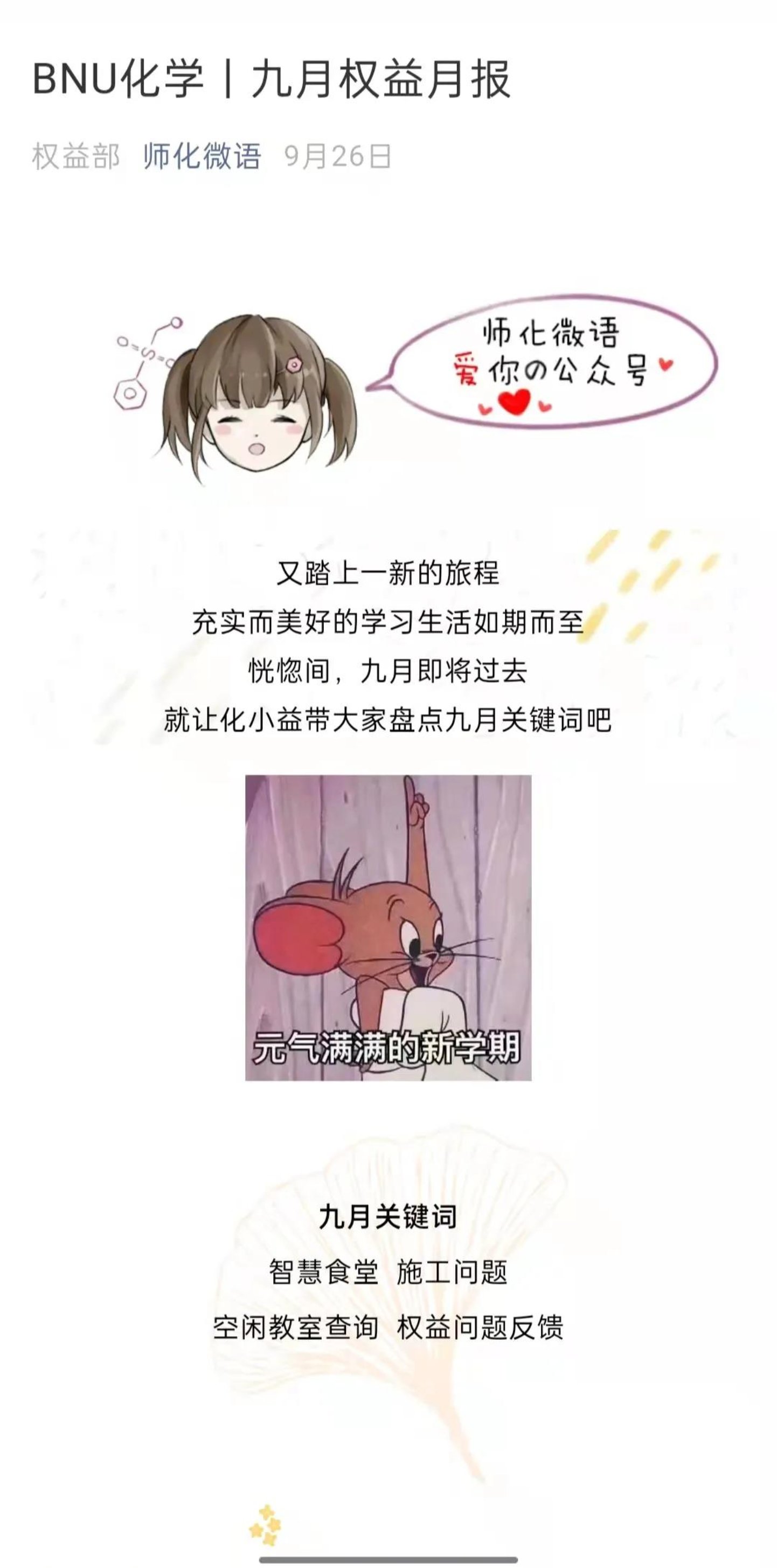 密切关注广大同学的切身利益