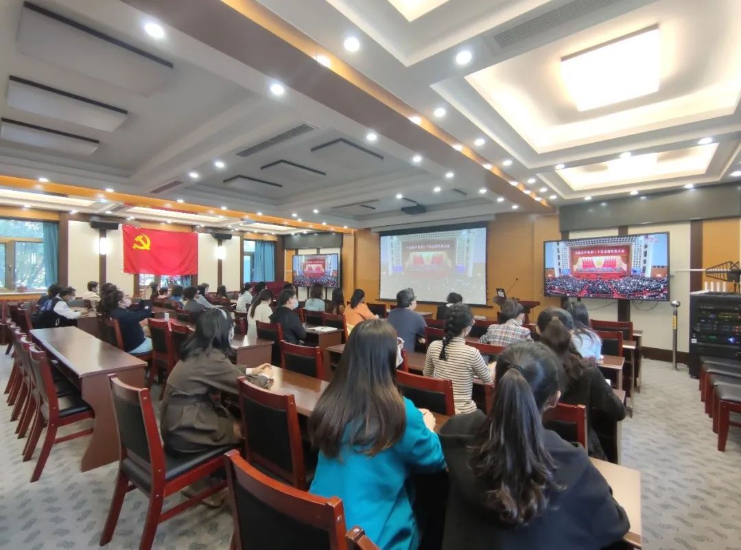2022年10月16日,中国共产党第二十次全国代表大会在北京召开,这是全党全国各族人民的一件盛事、要事。为使全院师生在第一时间形成关注党的二十大、学习二十大精神的热烈氛围,10月16日上午,51动漫 组织师生代表在化学楼二楼会议室集体观看二十大开幕会的现场直播。学院党委书记卢忠林带领部分党委委员和党支部代表参加了集中观看活动。学院各党支部和团支部也组织了收看活动,无法参加集中观看活动的师生进行了自行观看。
