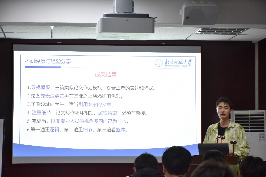 王嘉琛师兄以自身科研与升学历程为引,深刻诠释主动与坚持的力量。他强调,课堂互动是叩开科研大门的钥匙,勇敢尝试方能抓住赴德选拔等宝贵机遇;科研初期,要以海量文献阅读筑牢心理防线,精读顶刊、重视学术讨论,在选题时权衡创新与前景,及时复盘总结;升学路上,提前锚定方向,用真诚且全面的邮件叩响导师之门,面试时突出科研深度思考。“进一寸有一寸的喜悦”,他以亲身经历告诉我们,成长是脚踏实地的积累。