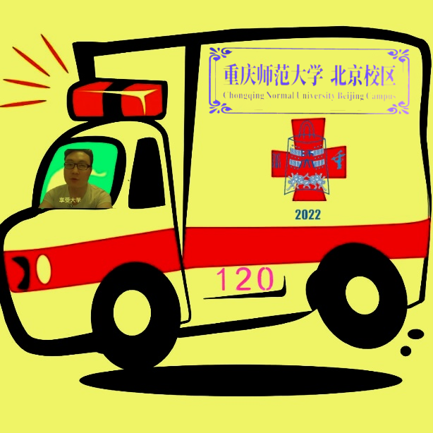在得知自己的宿舍房间号是120之后我们选择了一辆救护车作为QQ群图片,所以也把它作为LOGO的背景。车身下方的“120”是我们的宿舍门牌号。同时附上了唐老师的照片,代表着我们尊敬的唐老师作为“司机”带领我们奔向前程。车身“重庆师范大学北京校区”来源于我们自己在宿舍门外贴的标语,因为我们寝室6个人全是来自重庆(其中一个小伙伴退学了),所以我们调侃性地将重师LOGO的“重”字贴在了咱们北师大图标上。