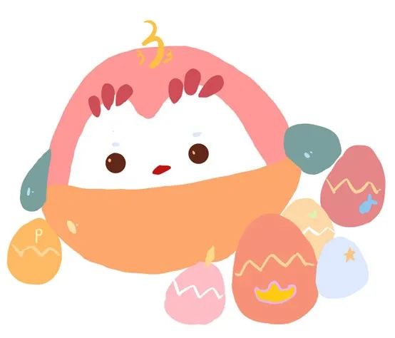 以我们宿舍人手一个的文创小鸟为创意,选择了最具特色的“戴胜”为主体,(小鸟头上的呆毛是我们宿舍的门牌333),并画了大小不同的六个蛋。每个人按年龄依次在蛋上画了代表自己的元素。