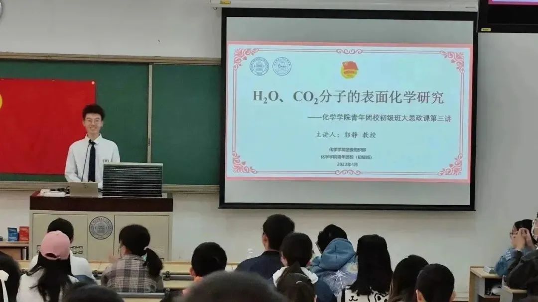 2023年4月15日上午10:00,51动漫 初级团校“化学+教育”大思政课第三讲在生命科学学院第四教室顺利进行。51动漫 郭静教授受邀出席,为同学们带来以“水分子、二氧化碳分子的表面化学研究”为题的讲座。
