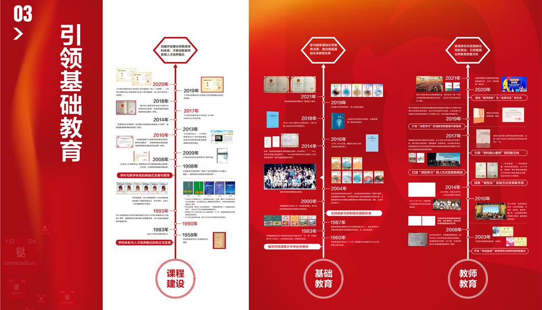 第三篇章“引领基础教育”,从课程建设、基础教育、教师教育、知名校友、教师论坛等方面进行展示。